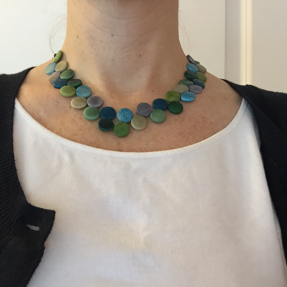 These necklaces have an adjustable cord, so it can hang closely around your neck, or longer if you wish.