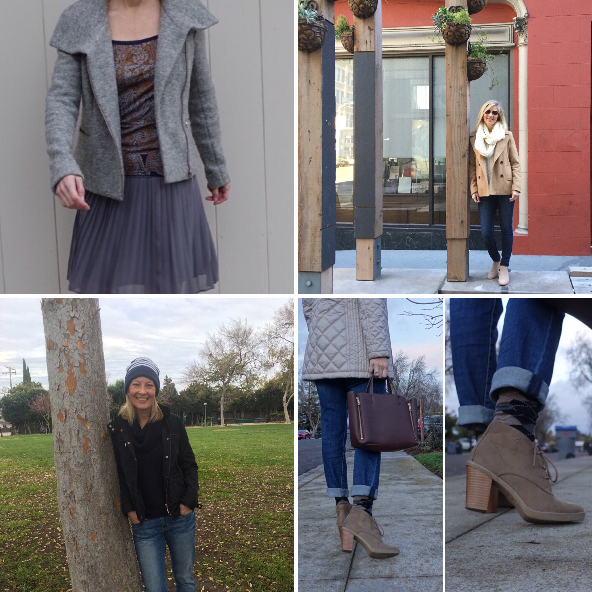 The top right was the first photo of the year, I liked the outfit and the background. The bottom right was also a favorite. I like primarily because I was able t tale the pictures myself, without bothering my “Instagram husband.” I also like the light, and it was a very wearable outfit for me. The photo on the bottom left was also very comfortable and I love navy. The top left was somewhat of a surprise for me. I was trying to meet the “pleats” prompt, and put on a summery skirt and tried to winterize it. I liked it, but it was very grey, however, it seemed to be one that others “liked.”